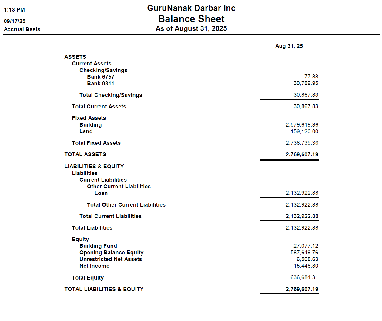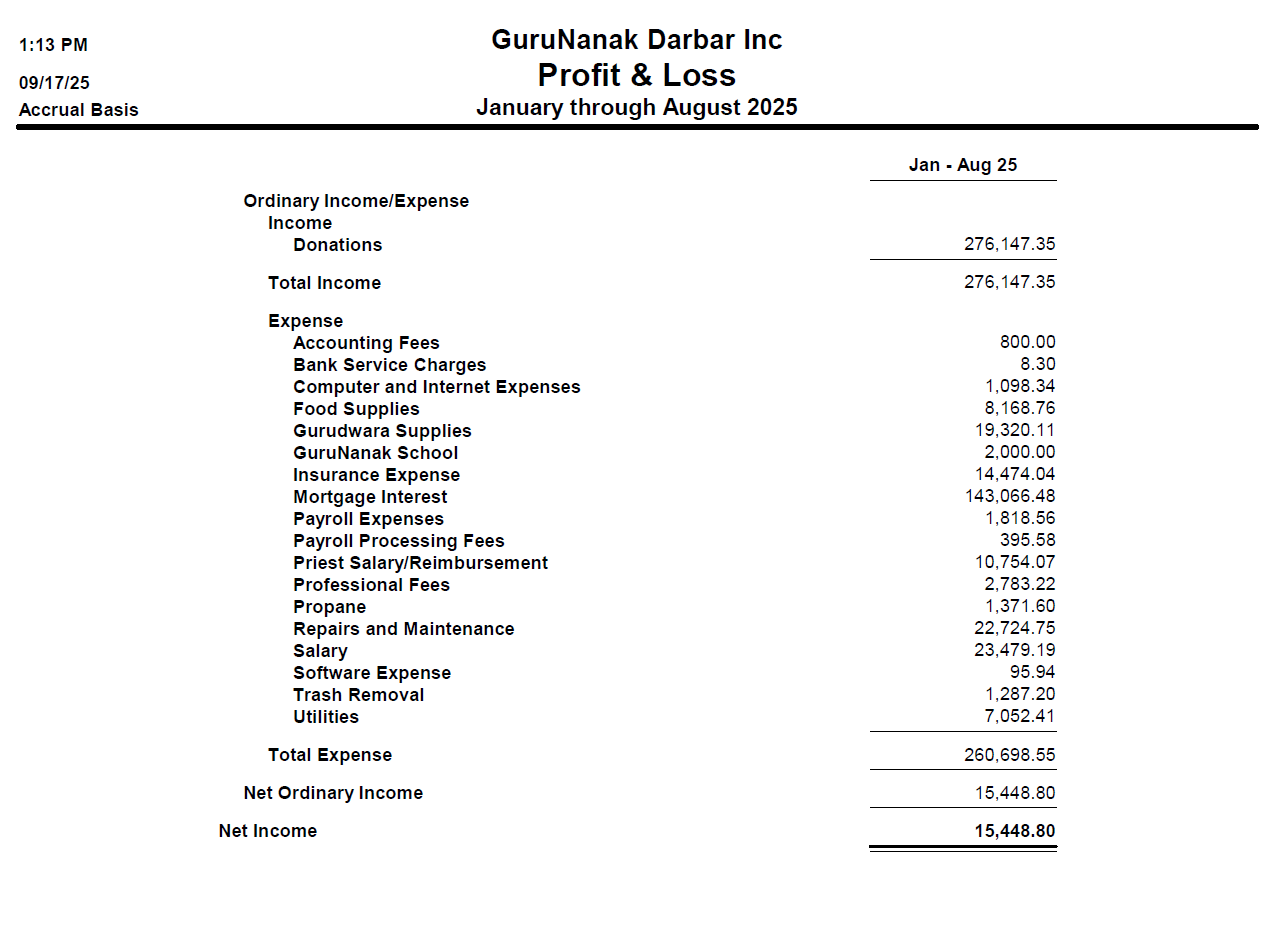 The property is financed by R Bank wherein a 20% down payment was made. The Principal Balance is $2,160,000.00. . The monthly ongoing mortgage payment is $17,880. Current monthly expenses are approximately $28,000 (Mortgage, Granthi Singh, Langar, repair, bills etc.) and we need your support to fulfill this payment.