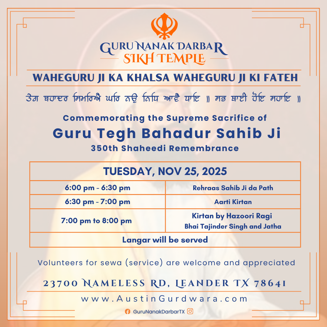 Be a part of this sacred event by volunteering your time and skills. Your contribution will help us honor the legacy of Guru Tegh Bahadur Sahib Ji. Whether it’s serving langar or assisting with event logistics, your sewa is invaluable. Join us in making this remembrance a meaningful experience for all.